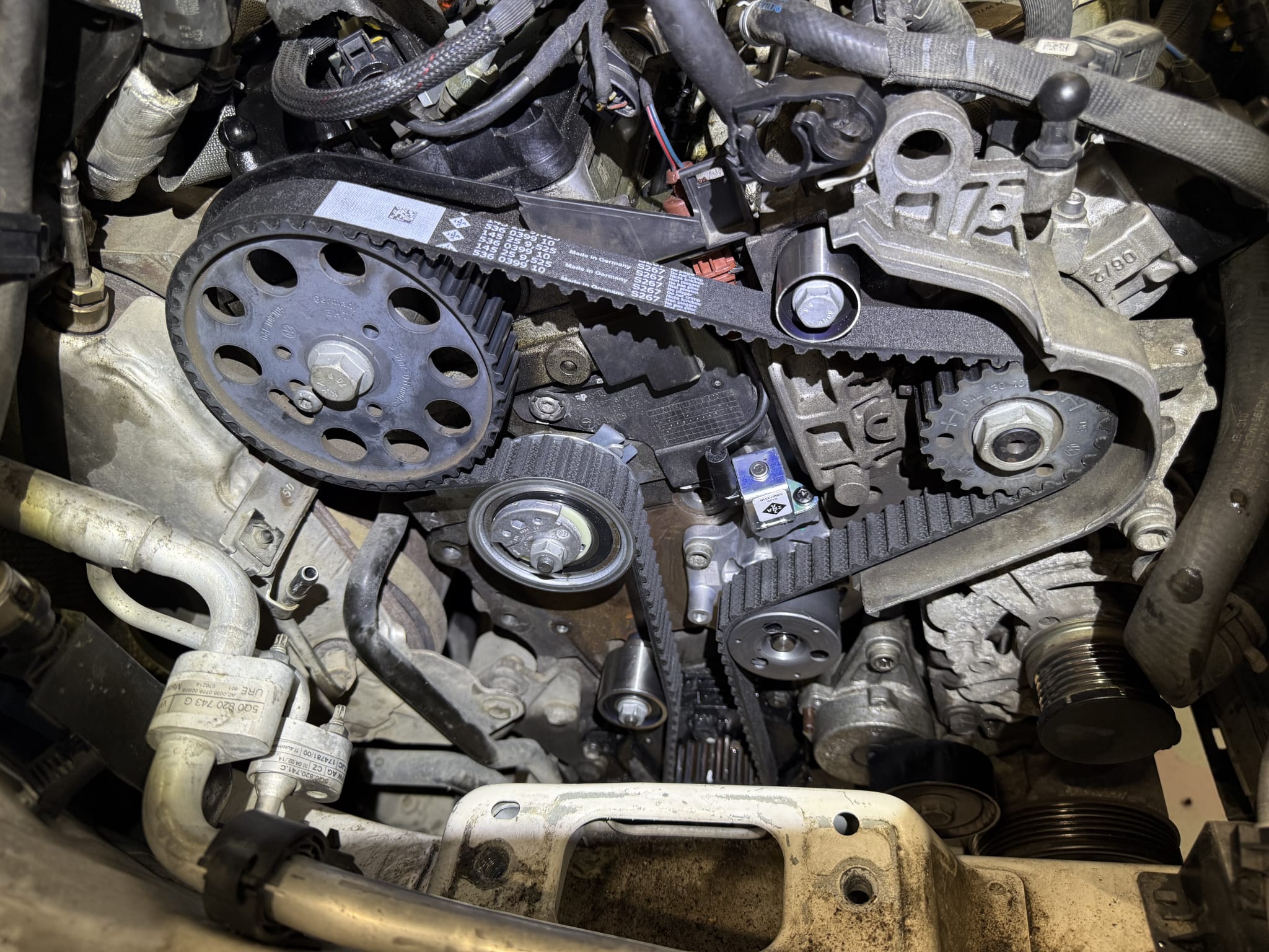 Jakohihnan ja siihen liittyvien osien vaihto moottorin turvallisen toiminnan varmistamiseksi.